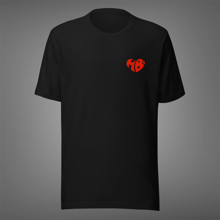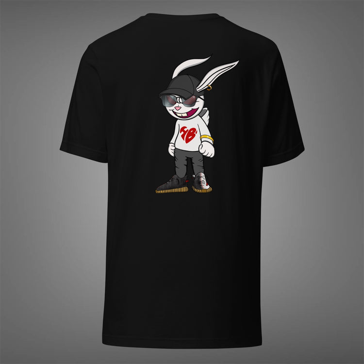 "Heart Beat Snow" T-Shirt, a stylish fusion of streetwear and character design. This t-shirt features the beloved HypeBunnies character Snow, embodying a cool and confident vibe that stands out. The front showcases a sleek "HB" heart logo, while the back highlights Snow in full character.